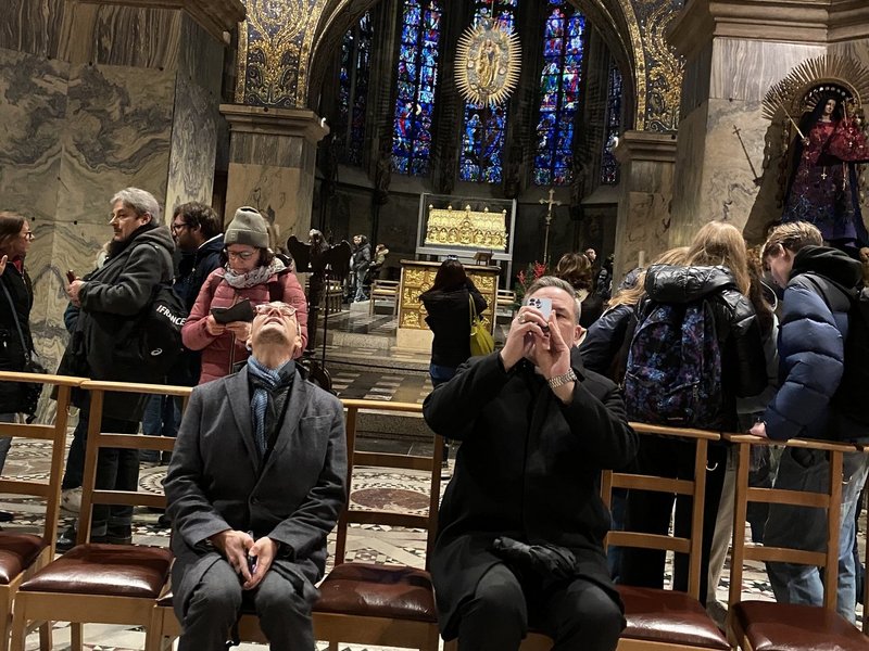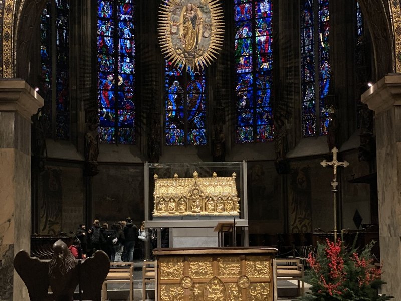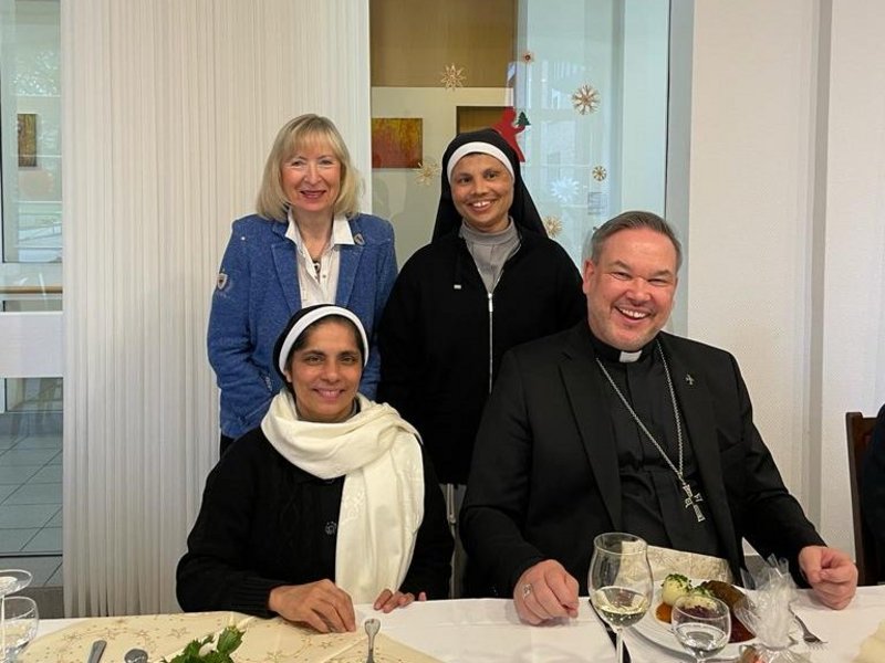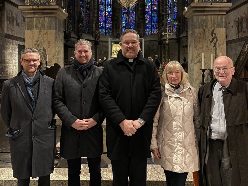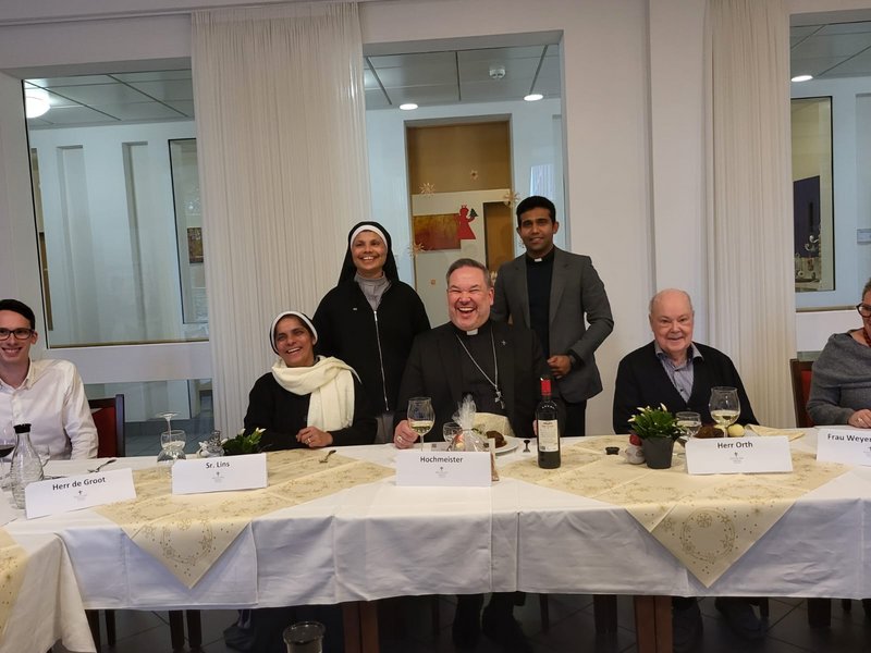 Der ehemalige Generalvikar Manfred von Holtum führte die Gäste durch das Weltkulturerbe und gab spannende Einblicke in die Geschichte des Doms. Im Anschluss begegnete der Hochmeister im Haus St. Raphael Mitarbeitenden, mit denen er sich intensiv bei einem gemeinsamen Essen austauschte.
