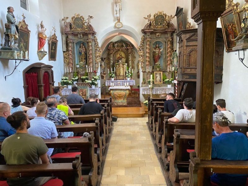 Bei der Abschlussandacht auf dem Kreuzberg ging dann der Blick auf Jesus, der im Sterben noch seine Mutter Maria versorgt. Er wird als ältester Sohn gleich nicht mehr da sein. Und da beauftragt er Johannes, sich um Maria zu kümmern. Eine sehr berührende und intensive Geste der Versorgung. Jetzt ist Maria die Versorgte. So will Gott auch uns versorgen, durch Christus.